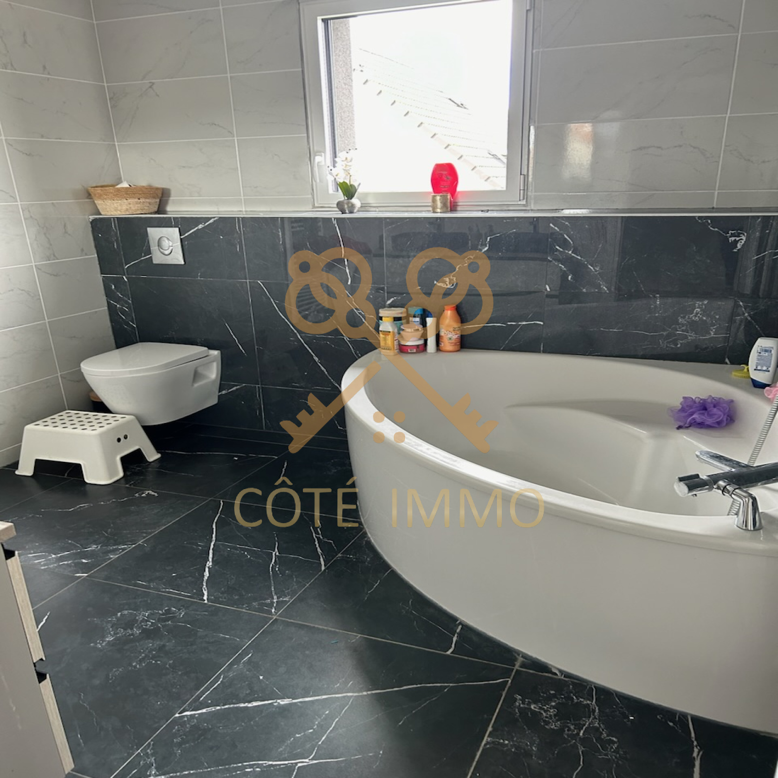 Pour le bien-être de tous, l'existence d'une 2 ème salle de bains ( baignoire d'angle doubles vasques et toilettes ) est indispensable pour bien démarrer la journée avant de partir travailler.