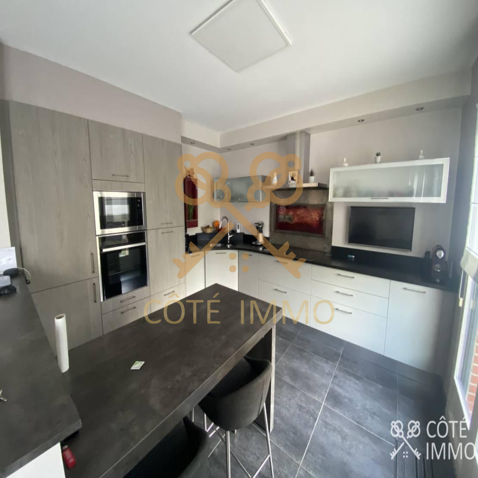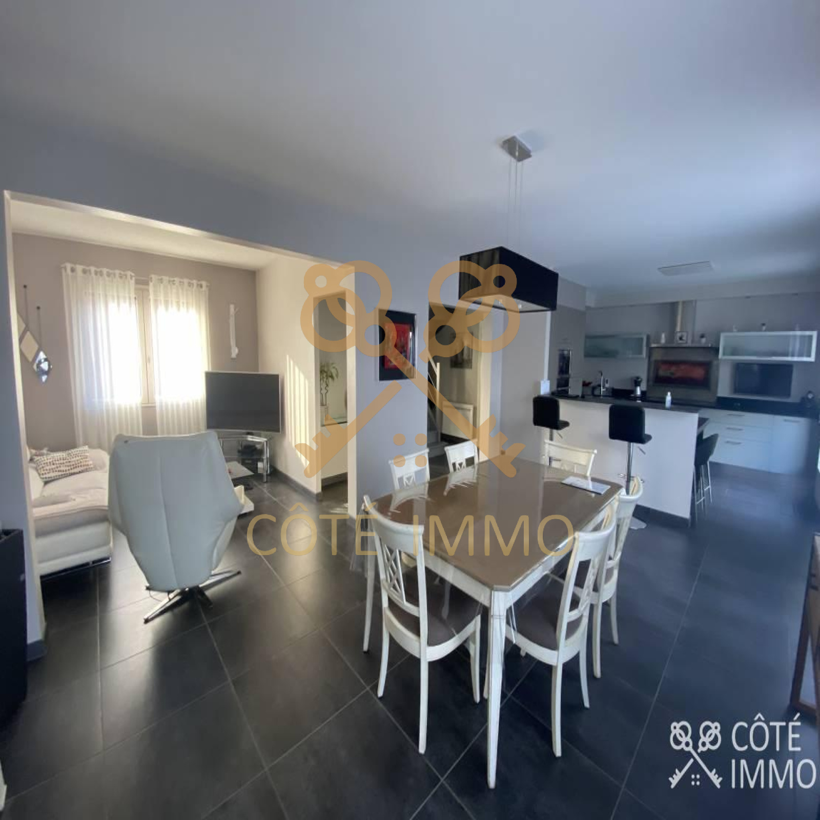 Il vous offre : hall d'entrée, large séjour en L lumineux ouvert sur une cuisine équipée moderne haut de gamme,
